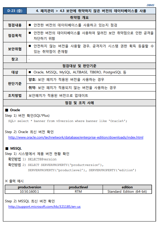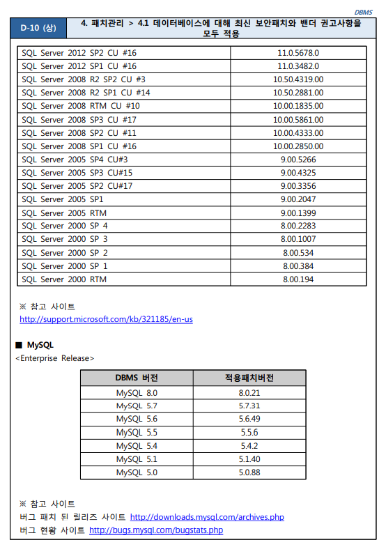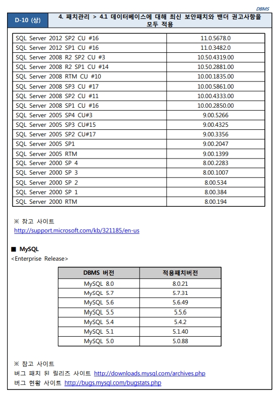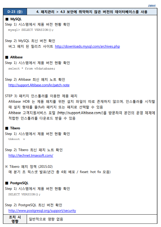 4.3 보안에 취약하지 않은 버전의 데이터베이스를 사용