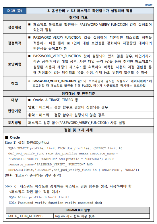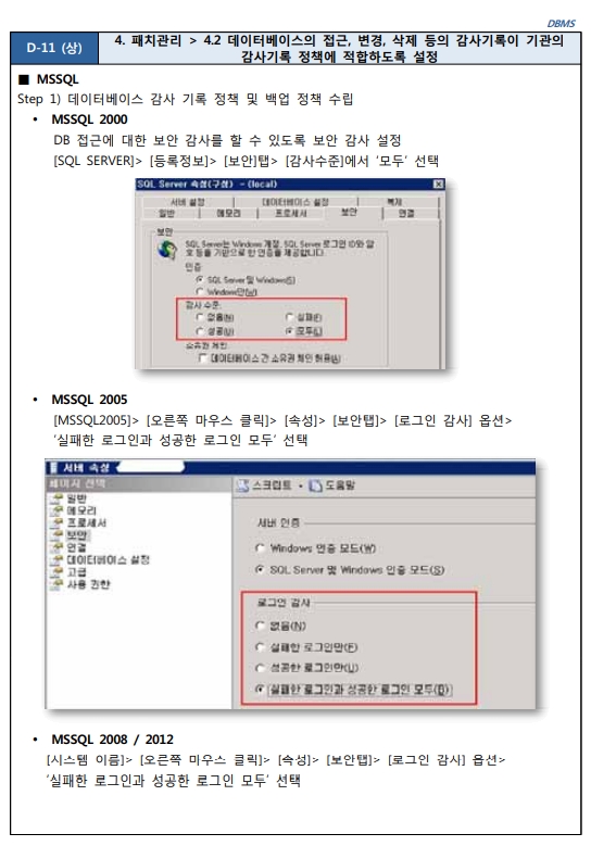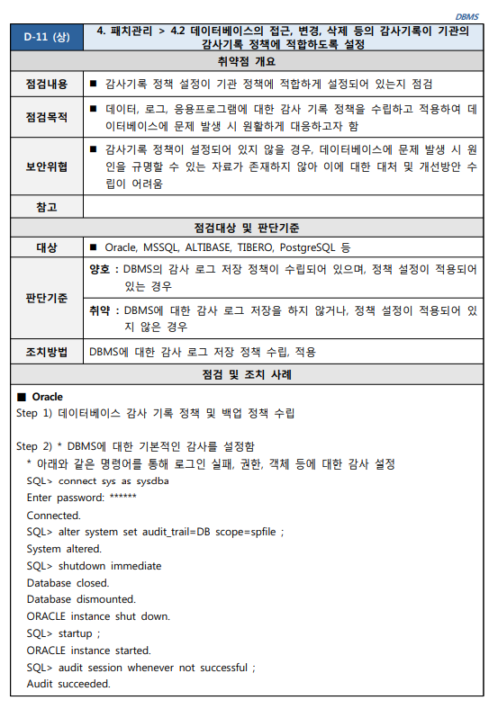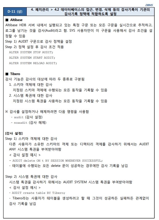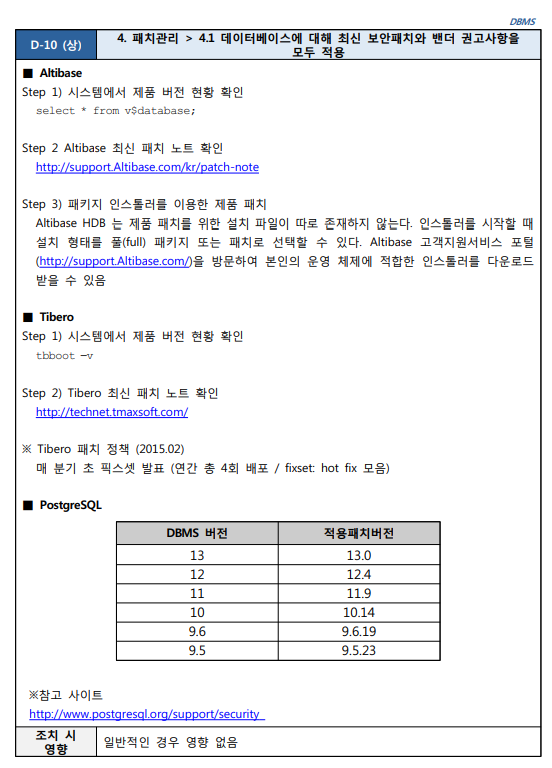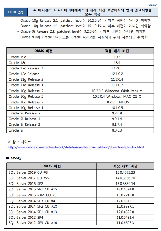 4.1 데이터베이스에 대해 최신 보안패치와 벤더 권고사항을 모두 적용