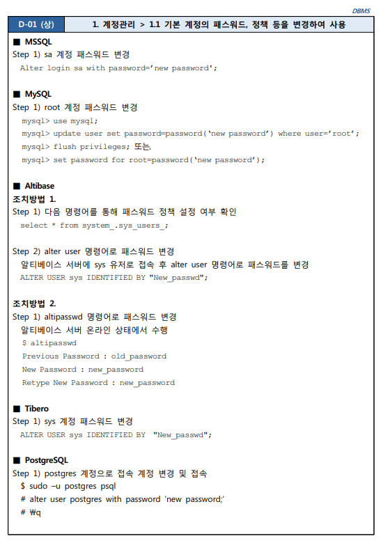 1.1 기본 계정의 패스워드, 정책 등을 변경하여 사용