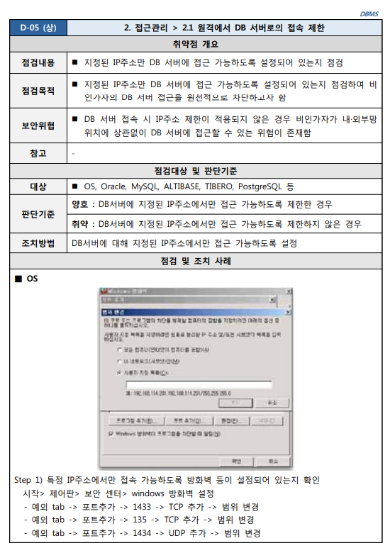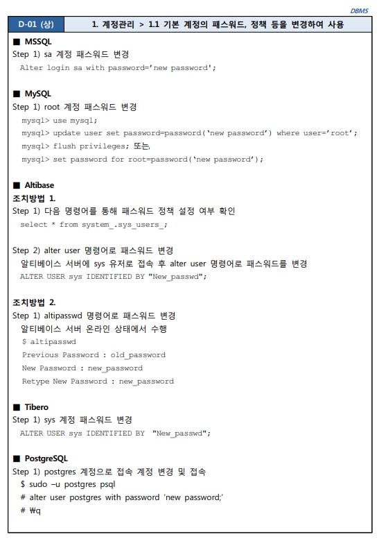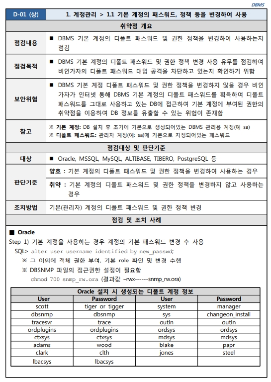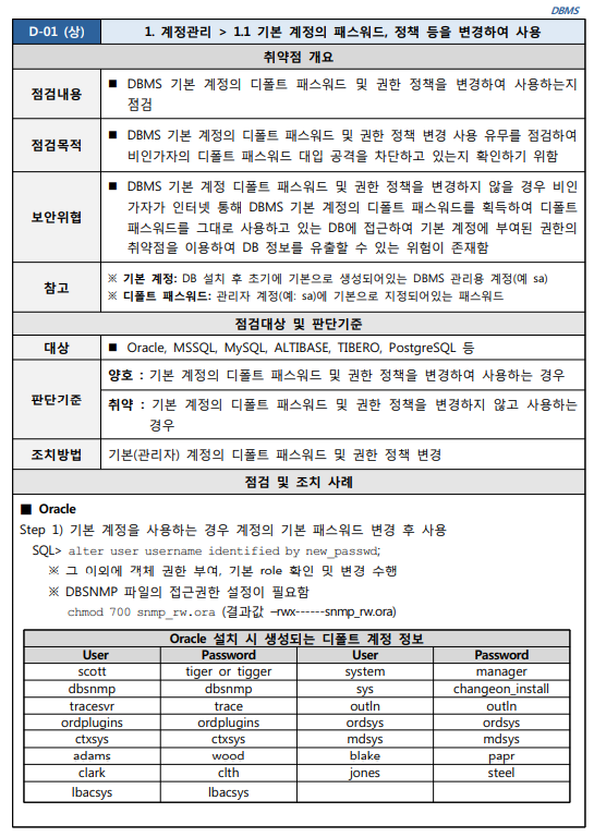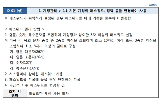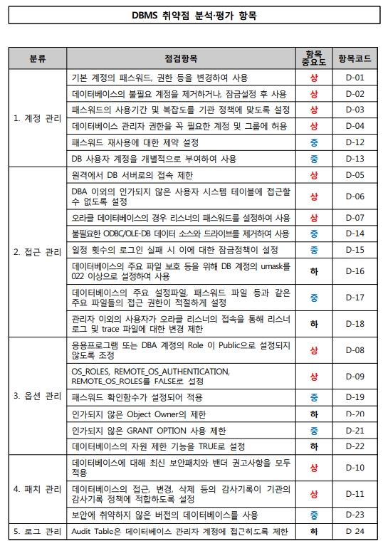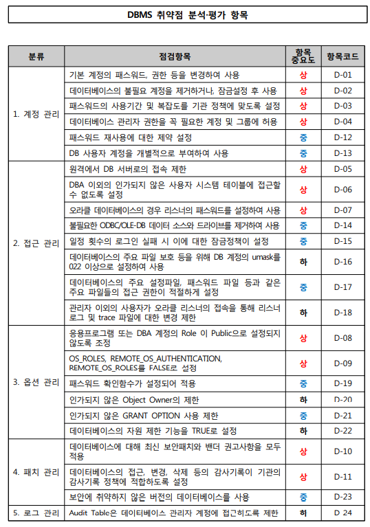 출처 : [2021.03] 과학기술정보통신부, 한국인터넷진흥원 발간 내용 "주요정보통신기반시설 기술적 취약점 분석ㆍ평가 방법 상세가이드"