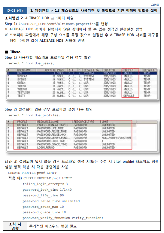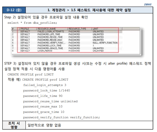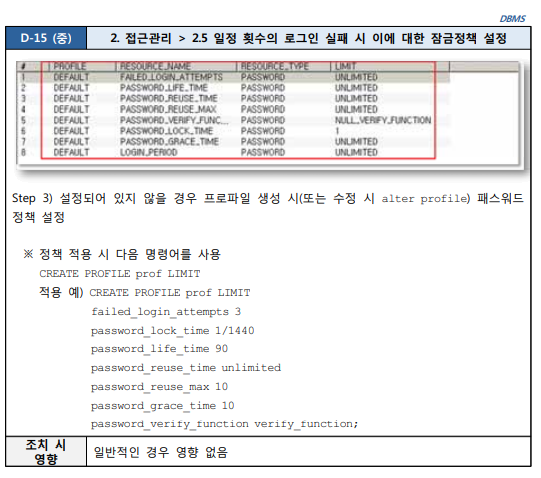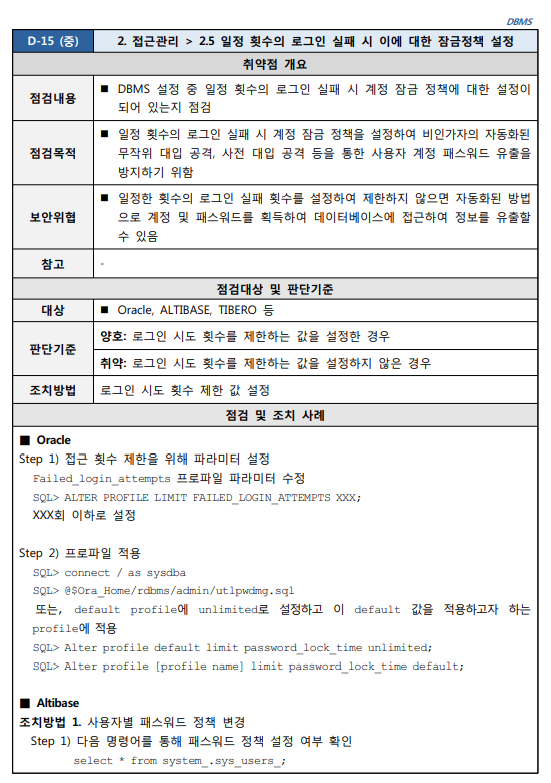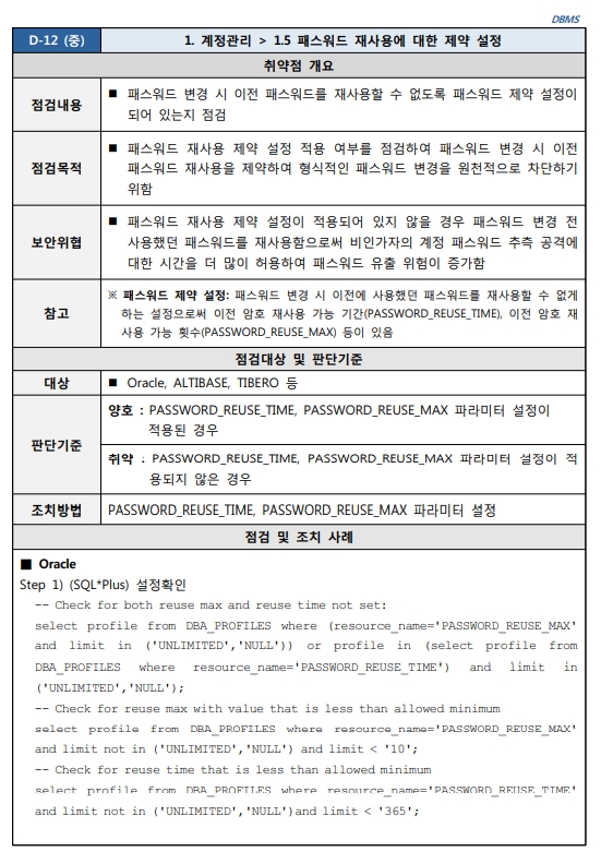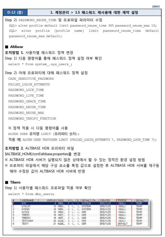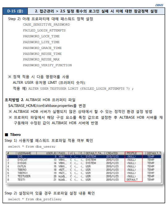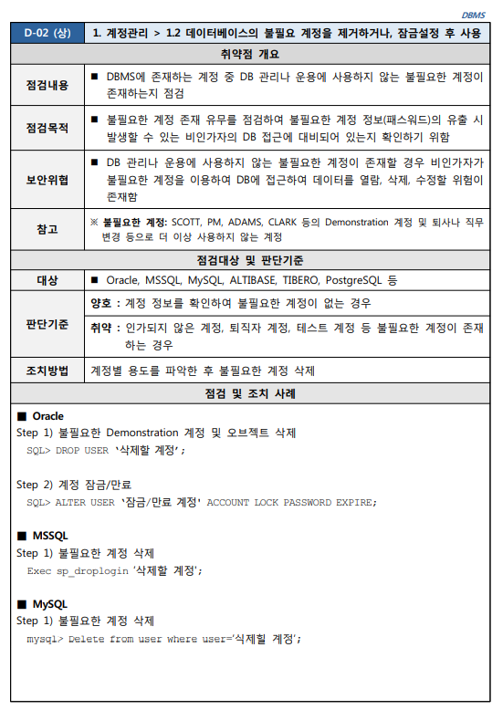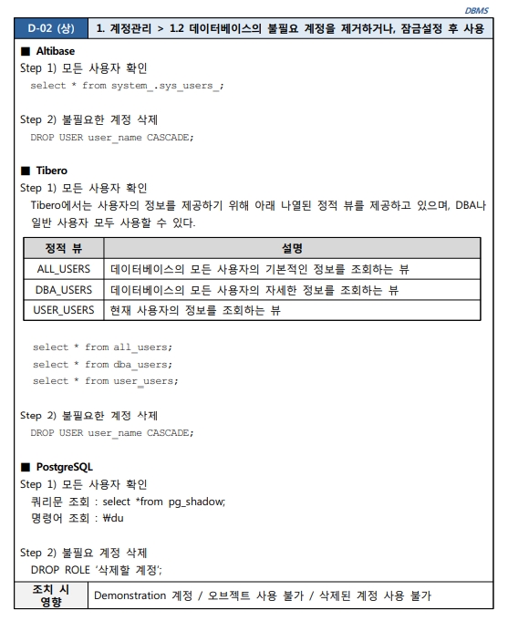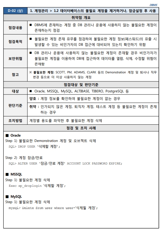 1.2. 데이터베이스의 불필요 계정을 제거하거나, 잠금설정 후 사용