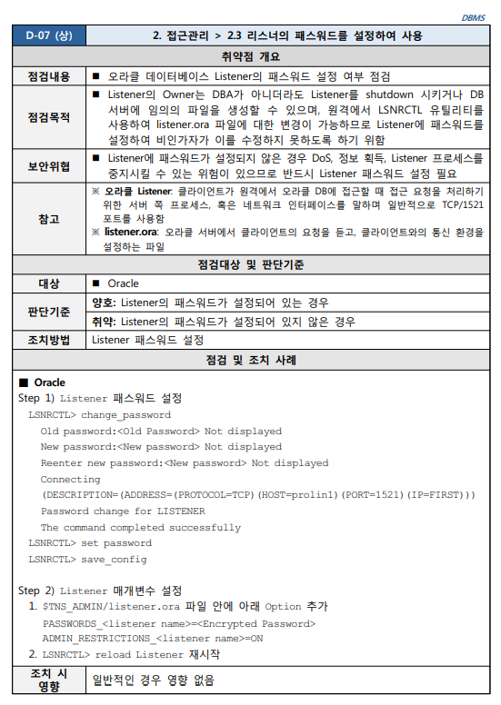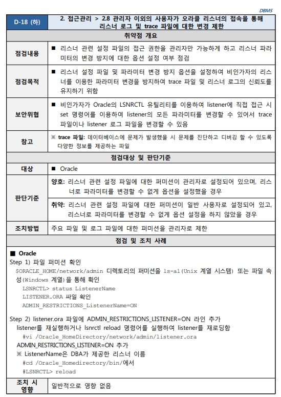 2.8 관리자 이외의 사용자가 오라클 리스너의 접속을 통해 리스너 로그 및 trace 파일에 대한 변경 제한