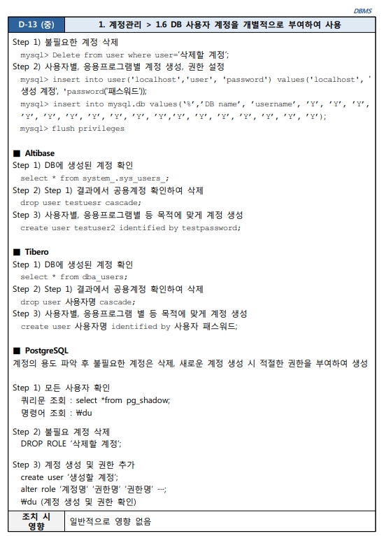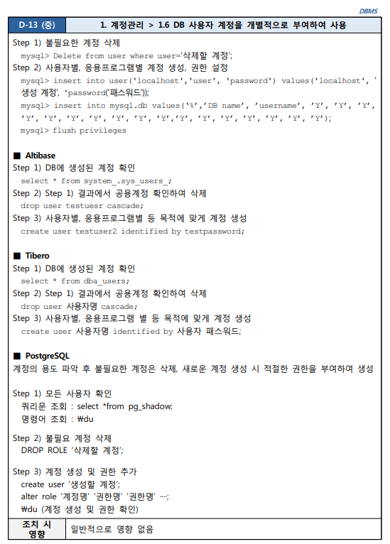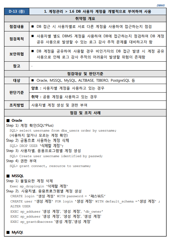 1.6 DB 사용자 계정을 개별적으로 부여하여 사용