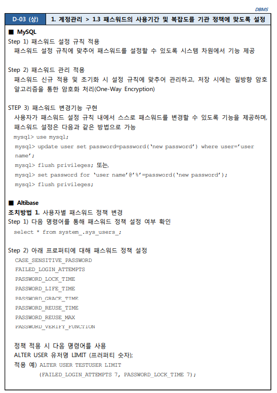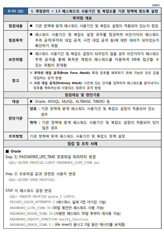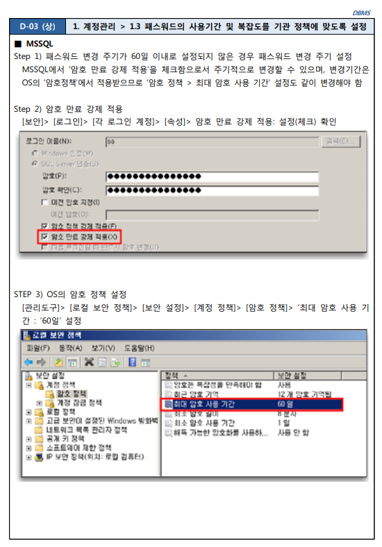 1.3 패스워드의 사용기간 및 복잡도를 기관 정책에 맞도록 설정