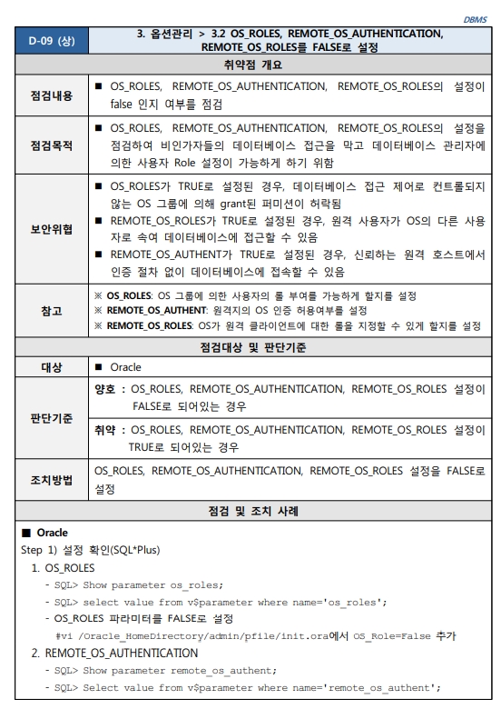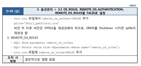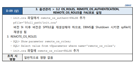 3.2 OS_ROLES, REMOTEOSAUTHENTICATION, REMOTE_OS_ROLES 를 FALSE 로 설정