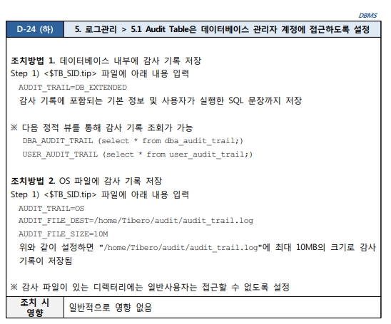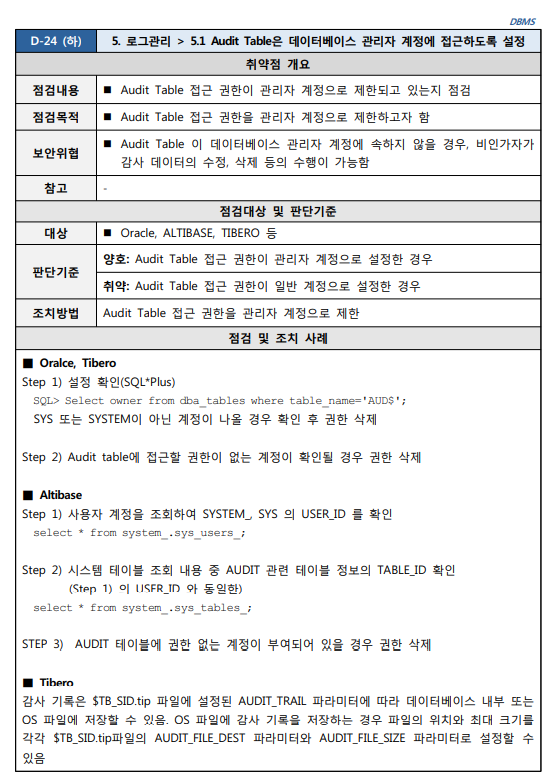 5.1 Audit Table 은 데이터베이스 관리자 계정에 접근하도록 설정
