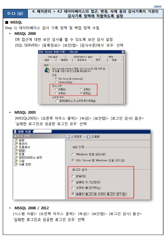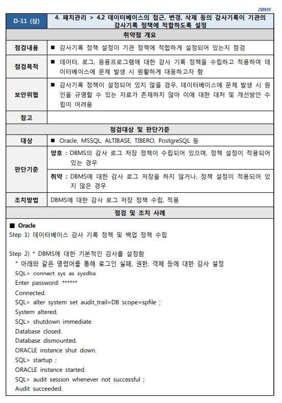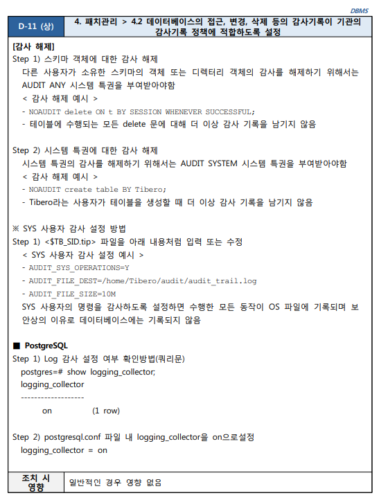 4.2 데이터베이스의 접근, 변경, 삭제 등의 감사기록이 기관의 감사기록 정책에 적합하도록 설정