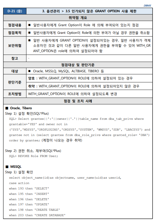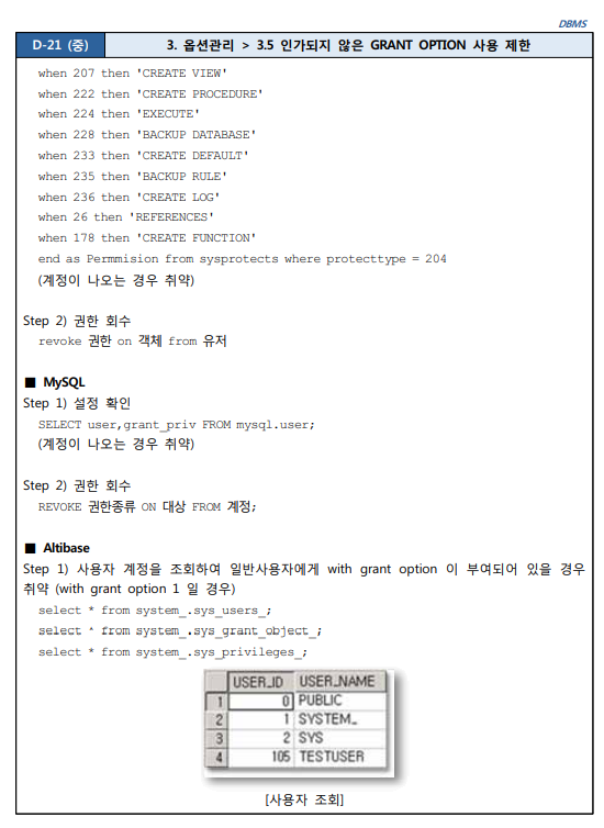 3.5 인가되지 않은 GRANT OPTION 사용 제한