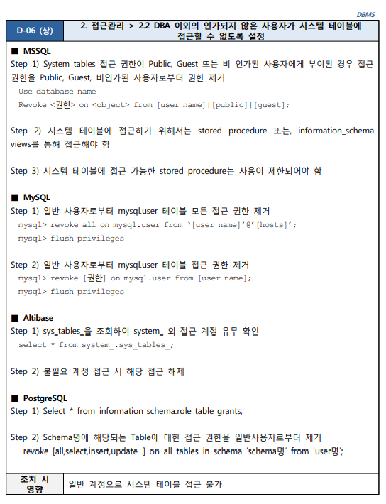 2.2 DBA 이외의 인가되지 않은 사용자가 시스템 테이블에 접근할 수 없도록 설정
