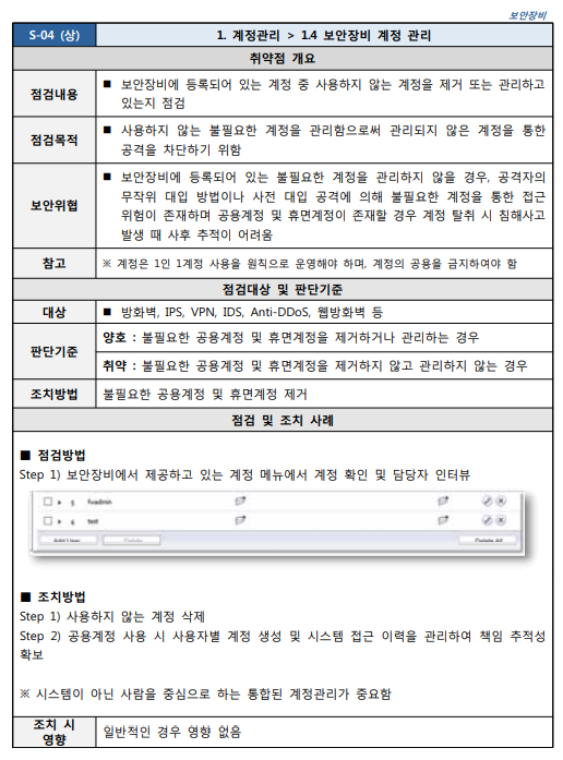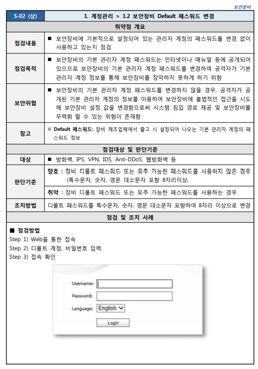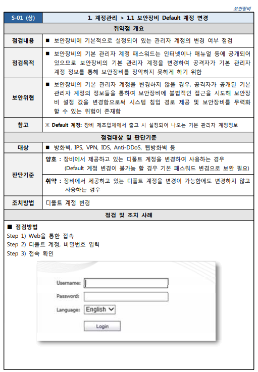 출처 : [2021.03] 과학기술정보통신부, 한국인터넷진흥원 발간 내용 "주요정보통신기반시설 기술적 취약점 분석ㆍ평가 방법 상세가이드"