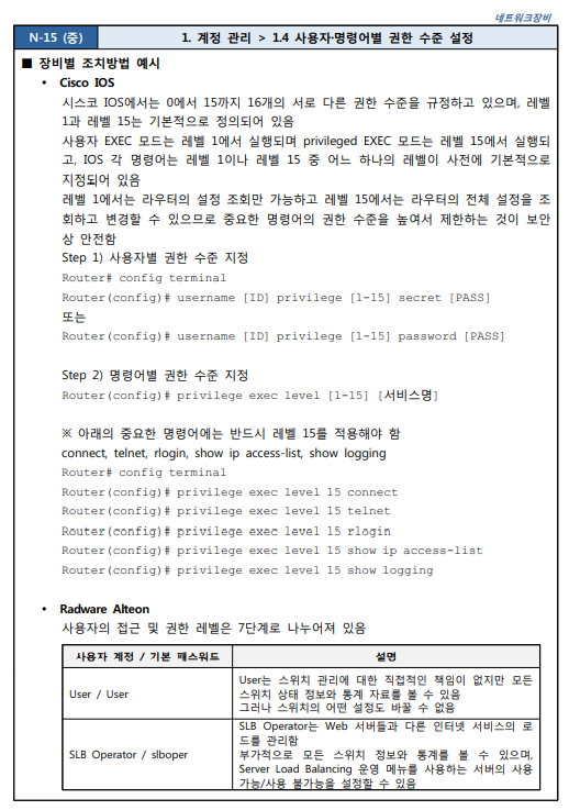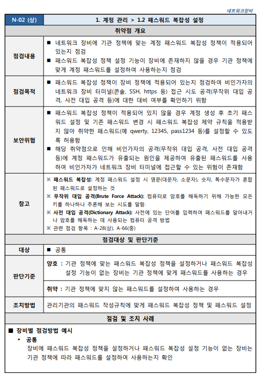 출처 : [2021.03] 과학기술정보통신부, 한국인터넷진흥원 발간 내용 "주요정보통신기반시설 기술적 취약점 분석ㆍ평가 방법 상세가이드"