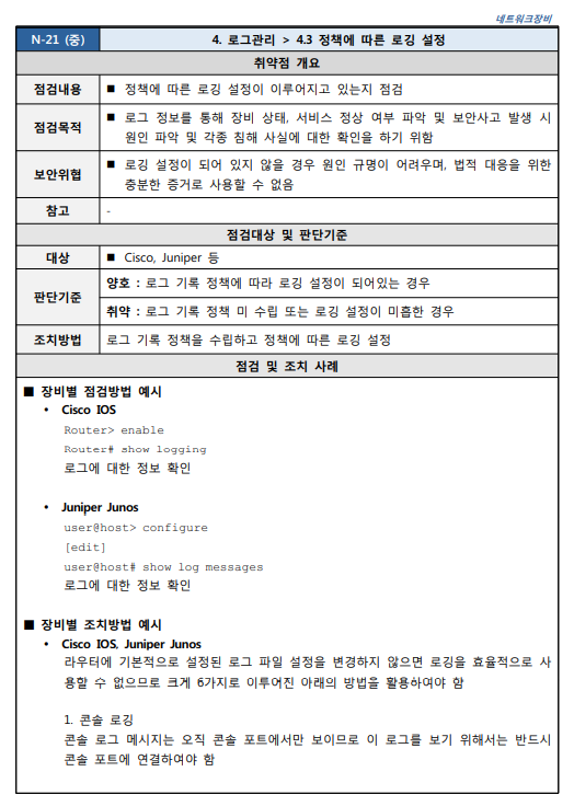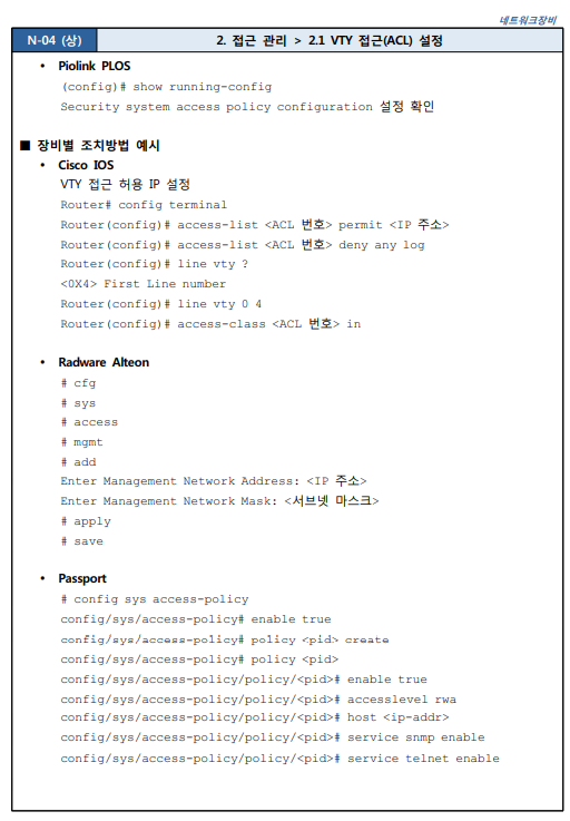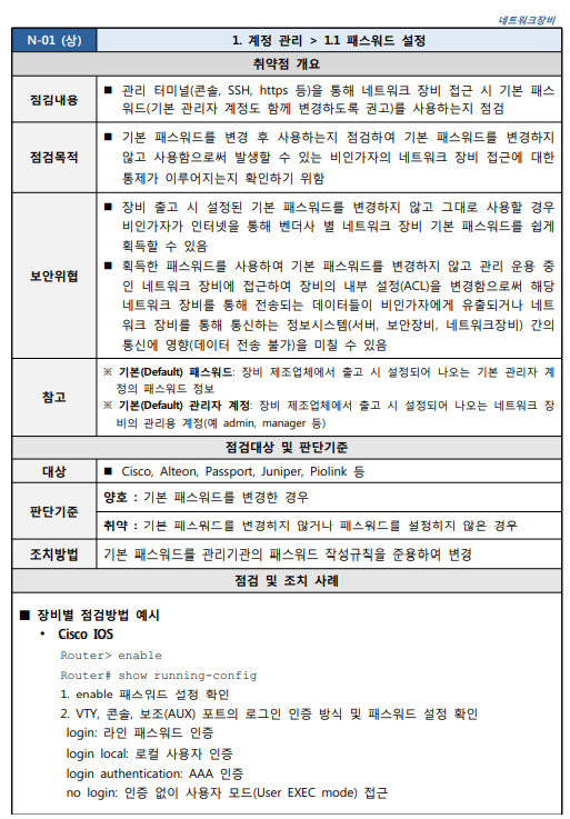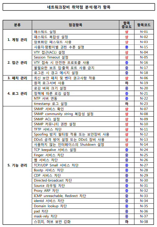 네트워크장비 취약점 진단 분석 평가 방법
