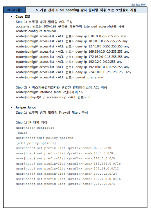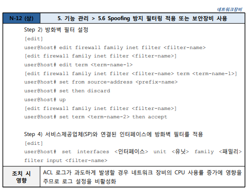 5.6 Spoofing 방지 필터링 적용 또는 보안장비 사용