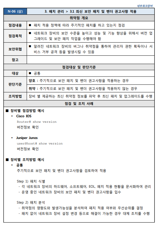 3.1 최신 보안 패치 및 벤더 권고사항 적용