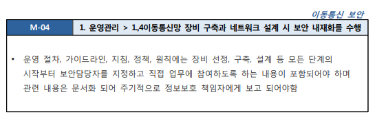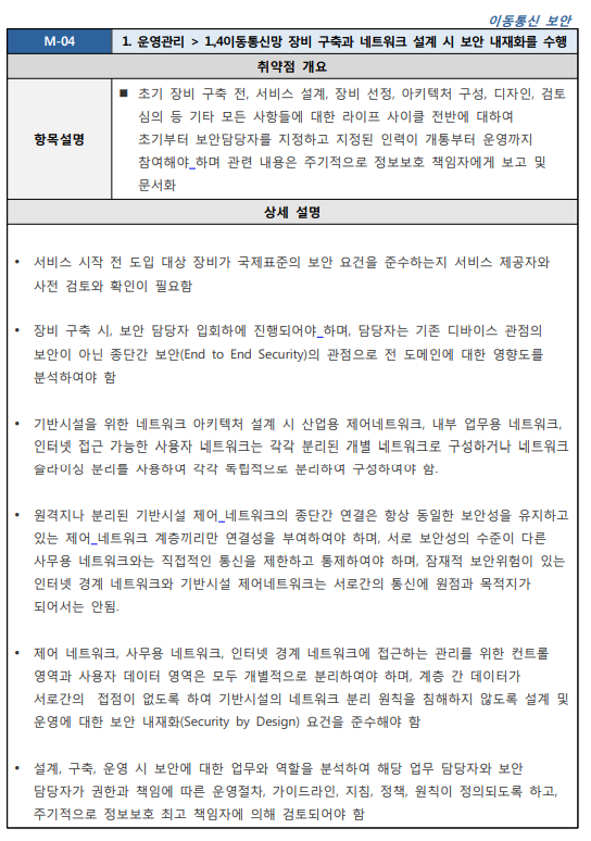 1.4 이동통신망 장비 구축과 네트워크 설계 시 보안 내재화를 수행