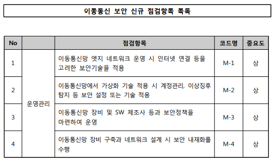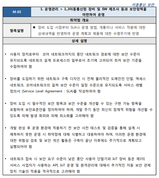 1.3 이동통신망 장비 및 SW 제조사 등과 보안적책을 마련하여 운영