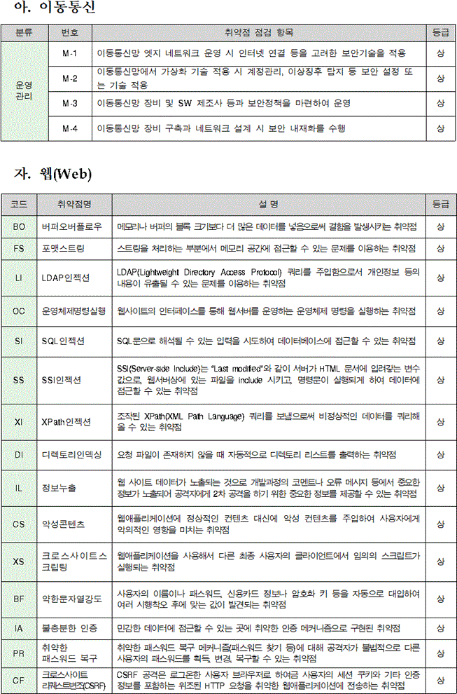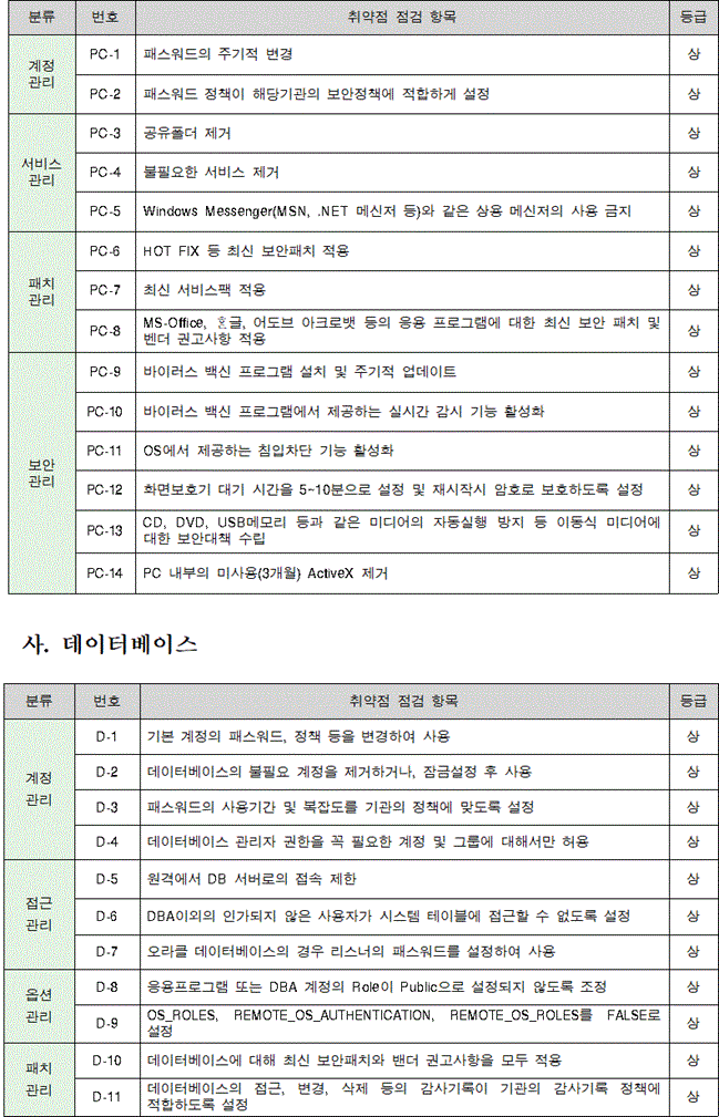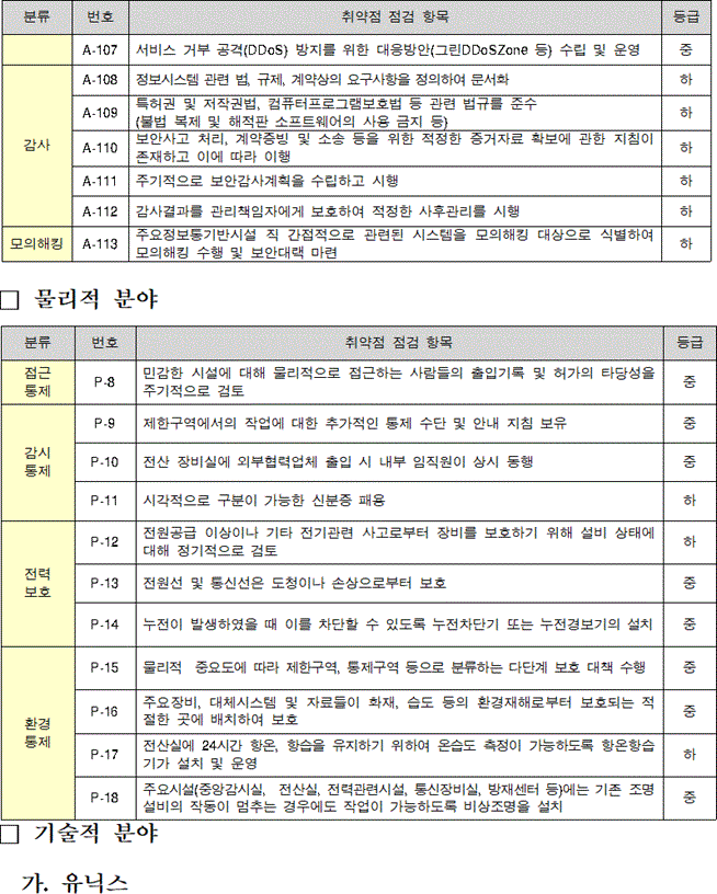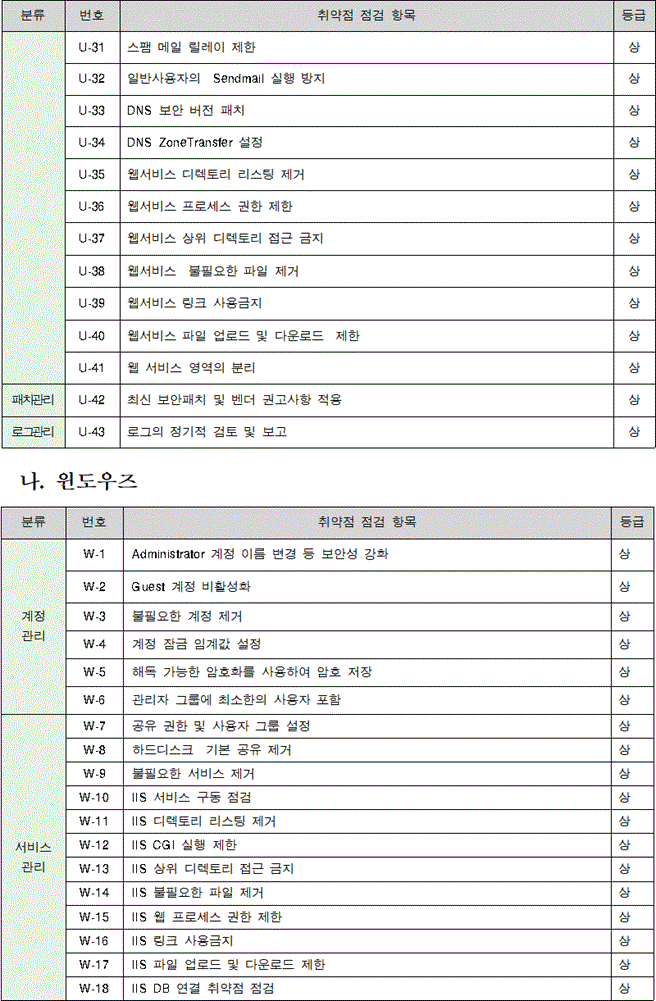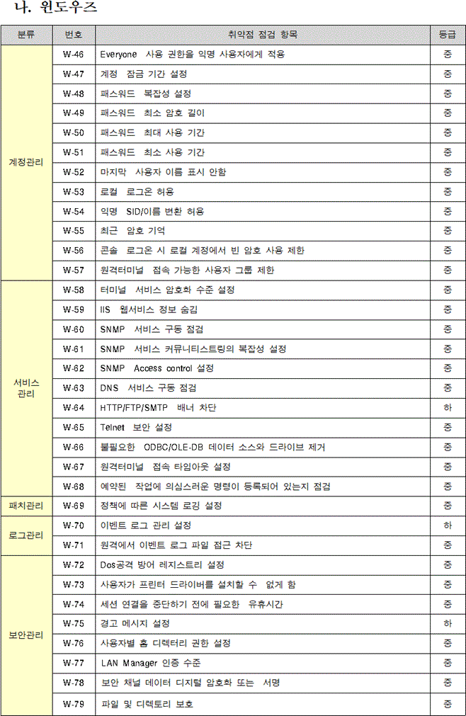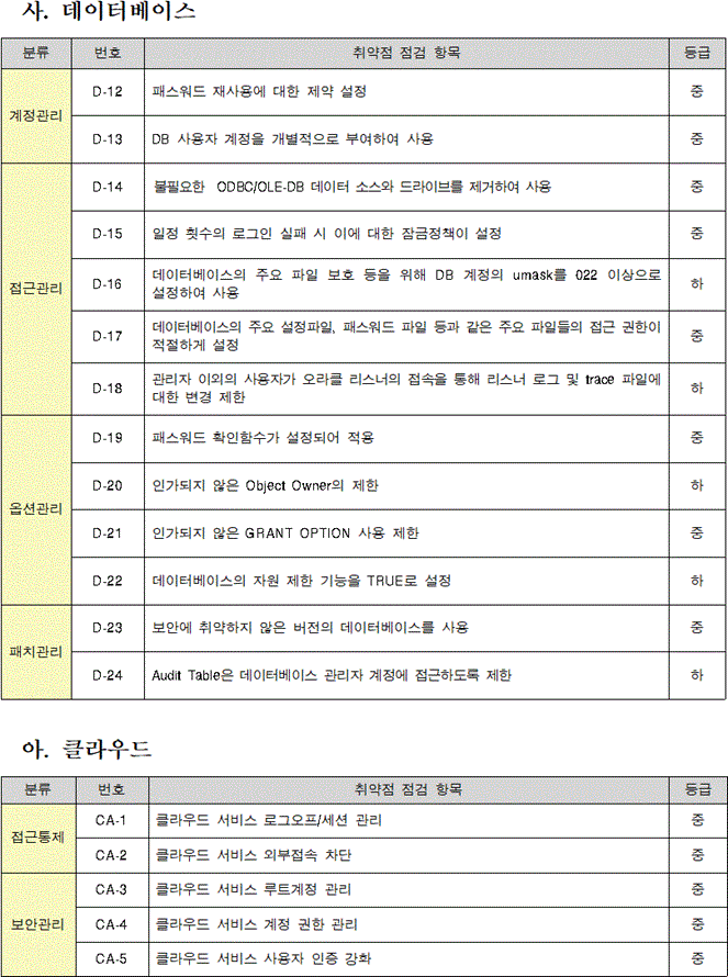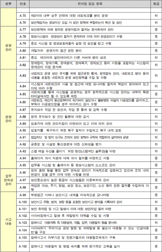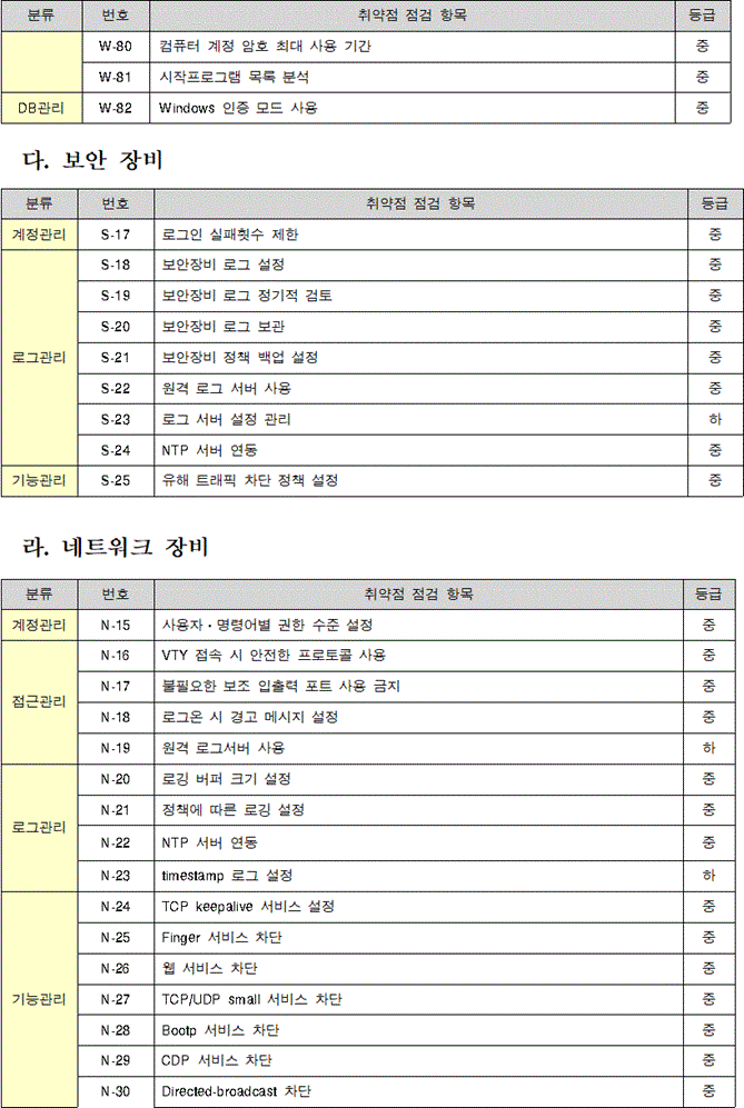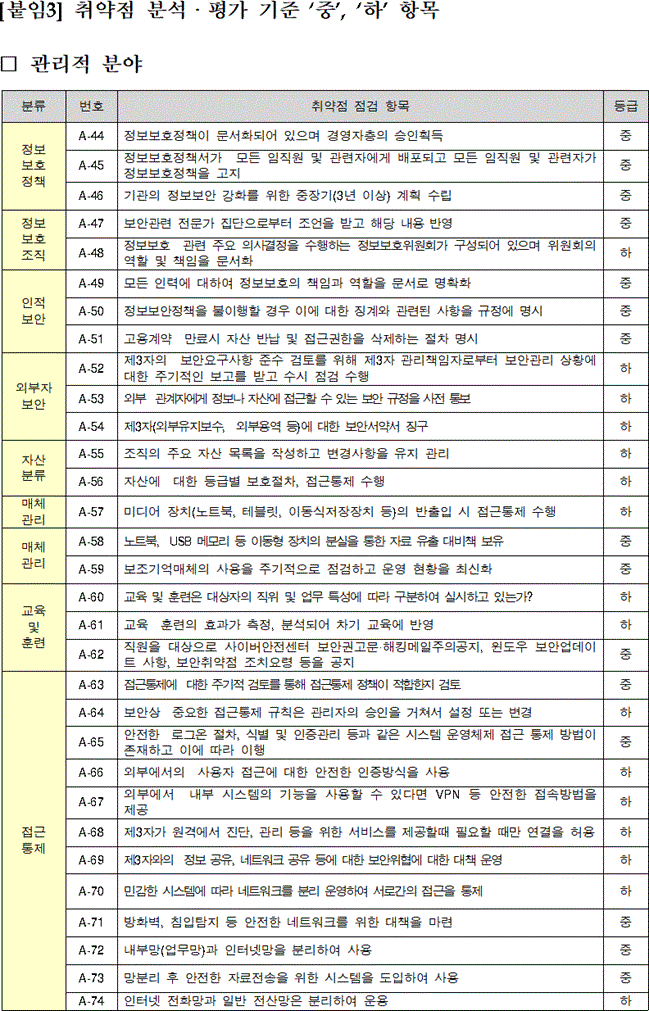 3. 취약점 분석·평가 기준 '중', '하' 항목