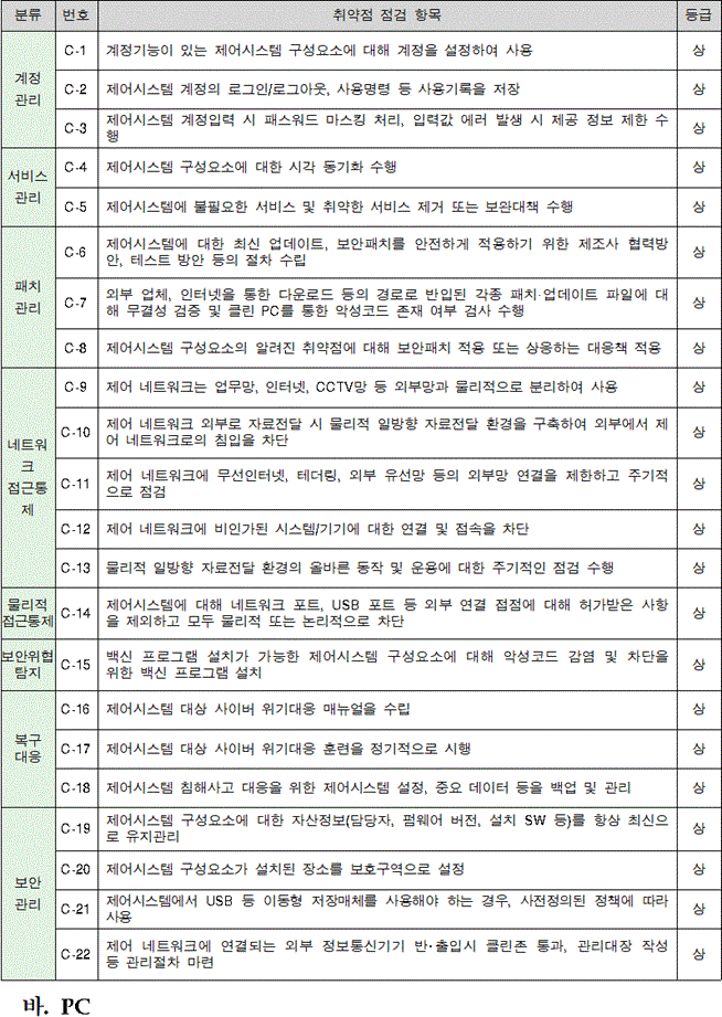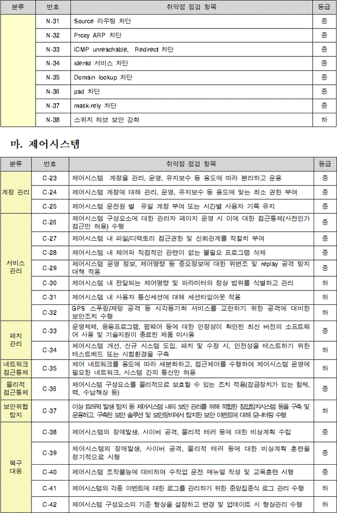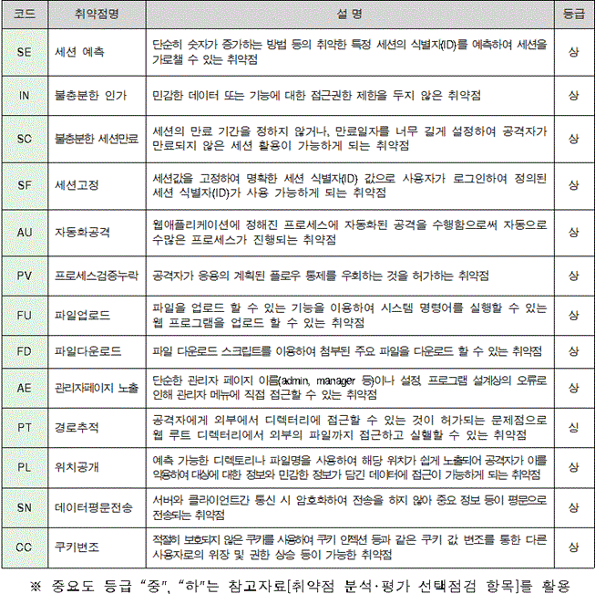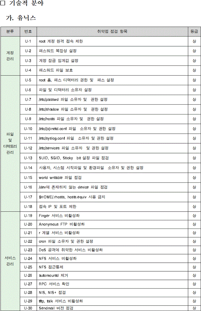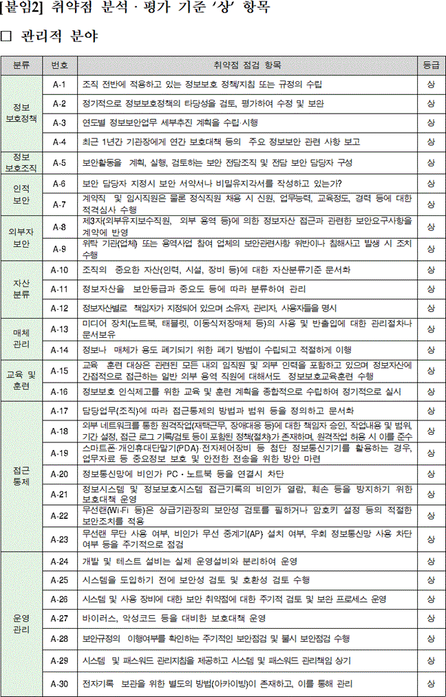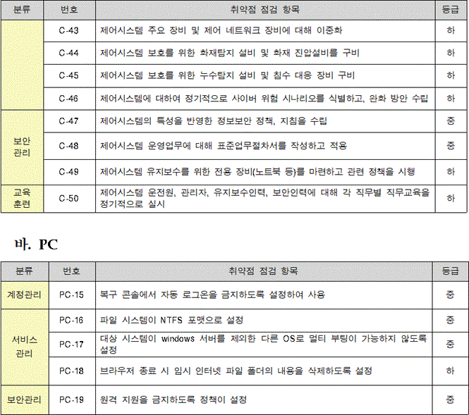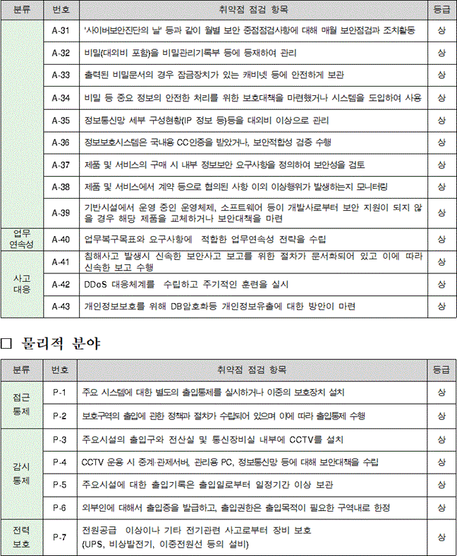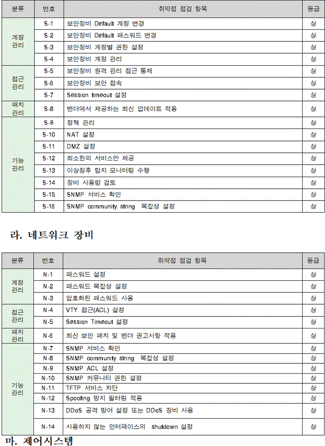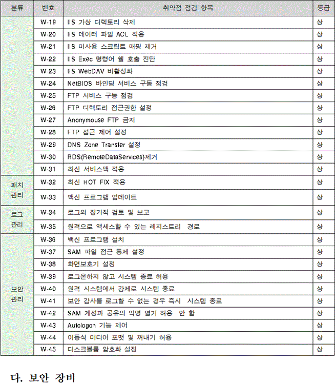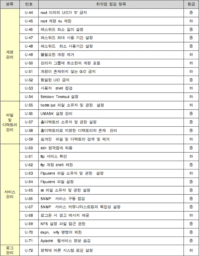 3. 취약점 분석·평가 기준 '중', '하' 항목