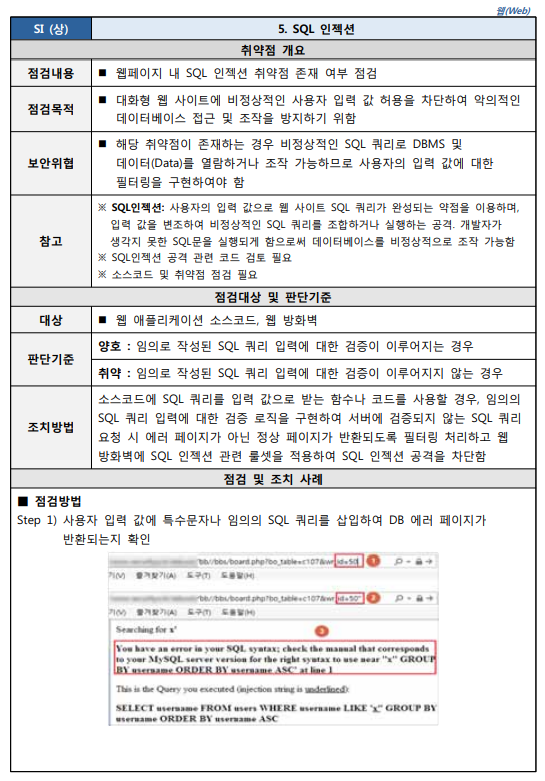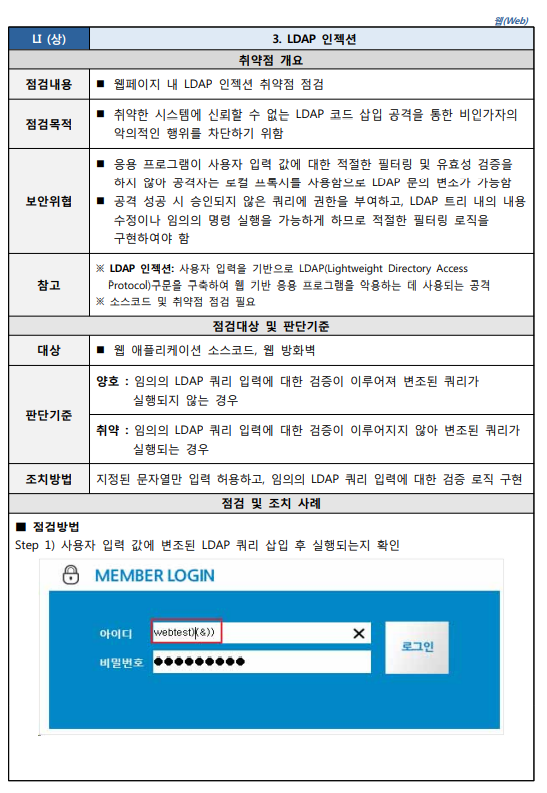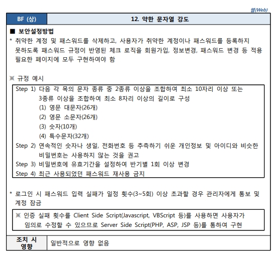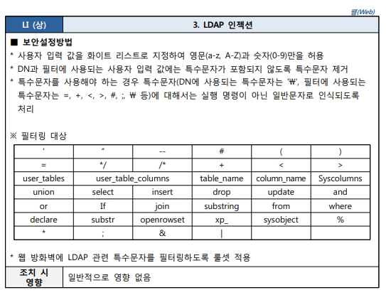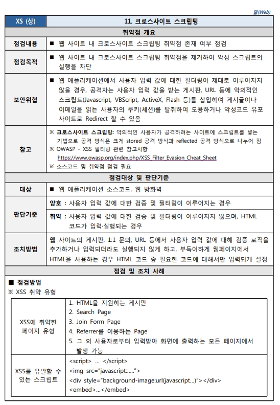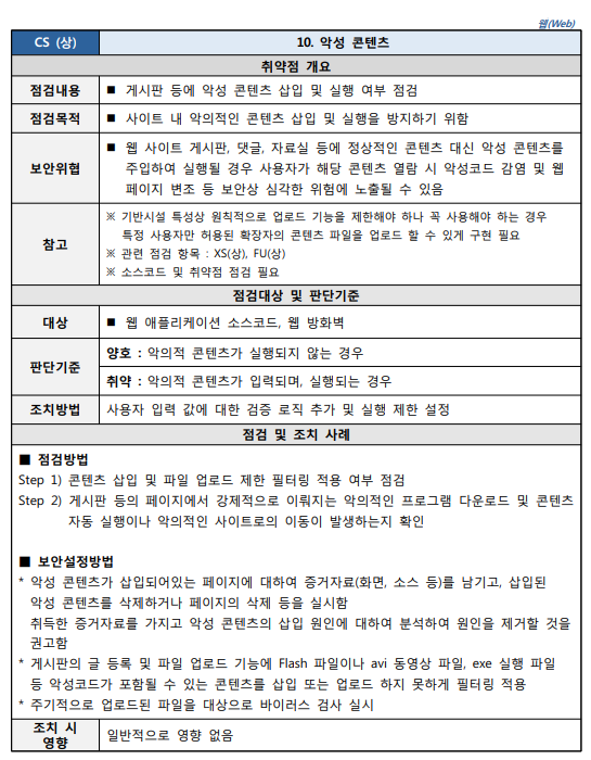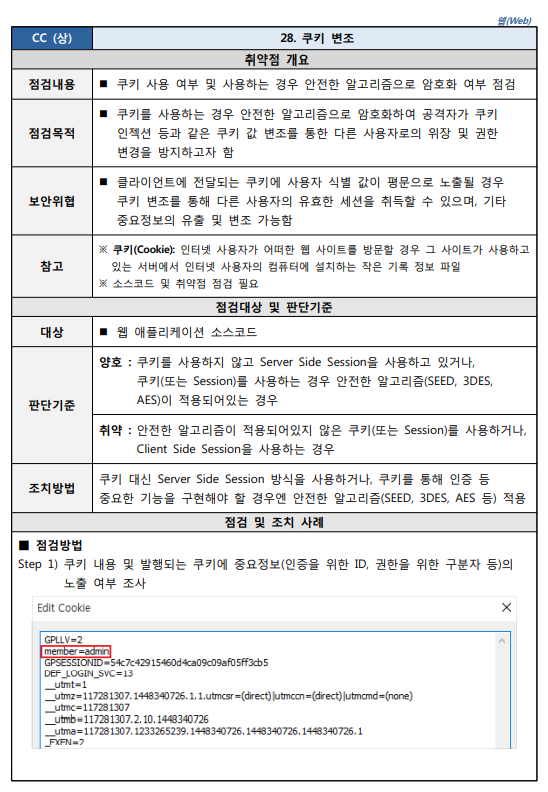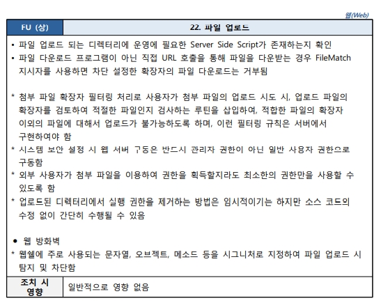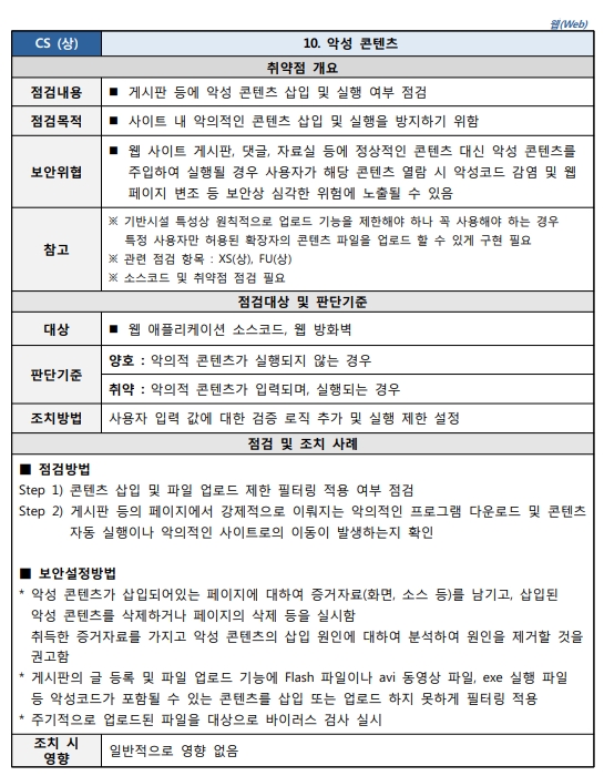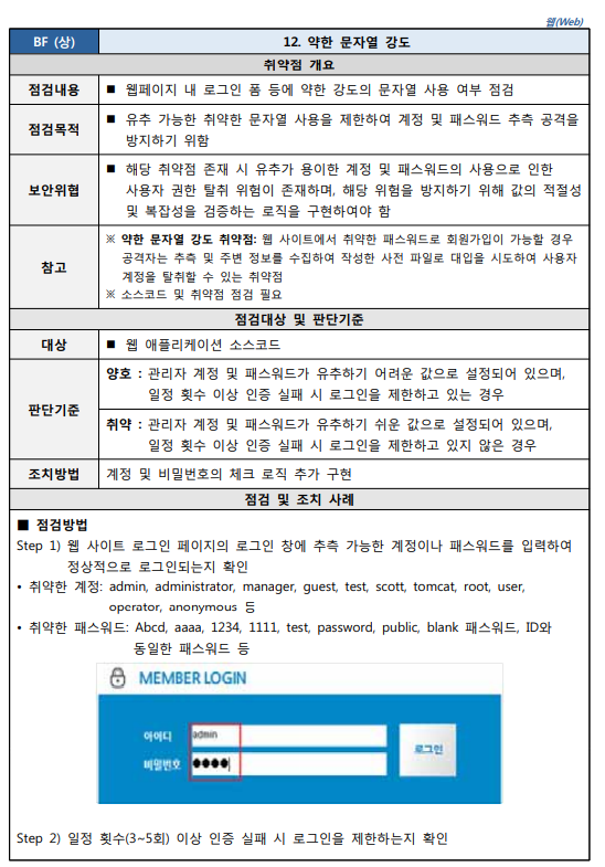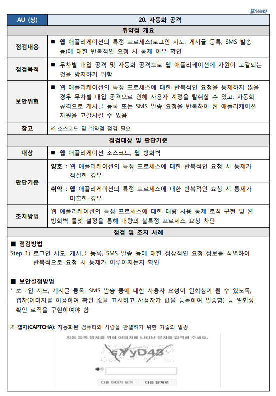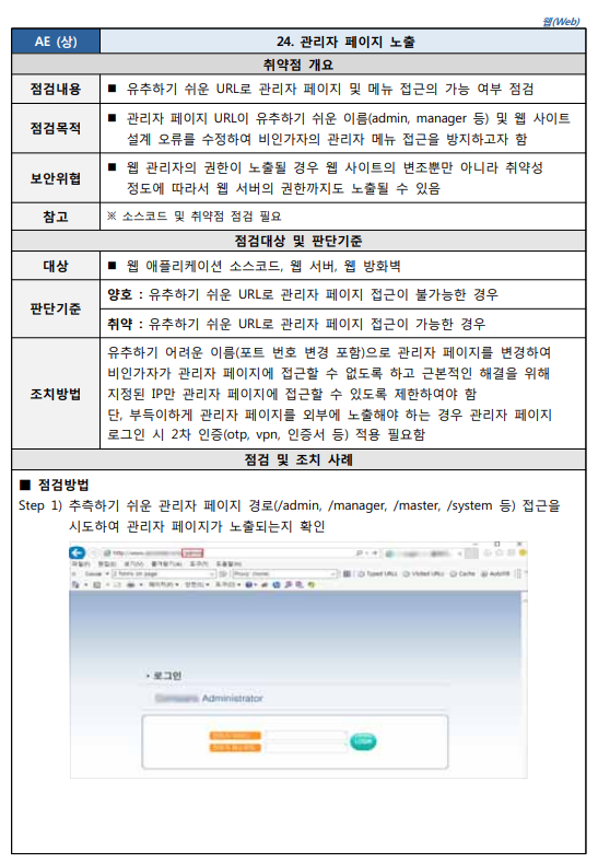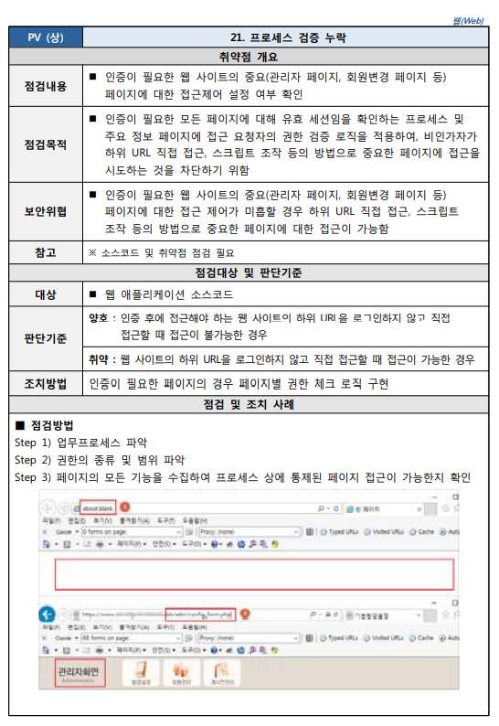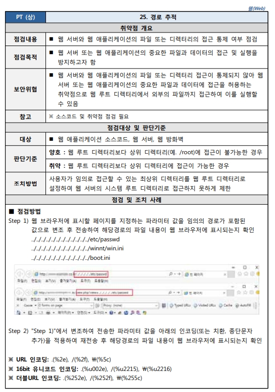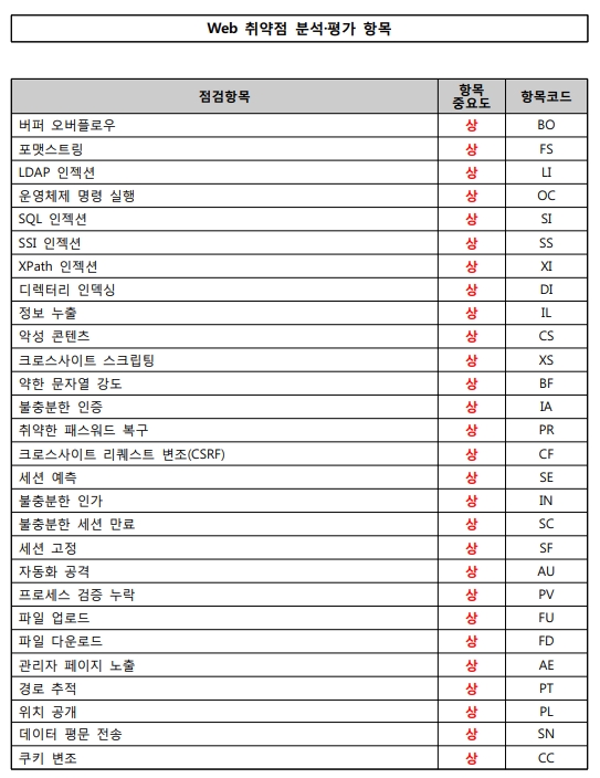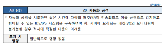 출처 : [2021.03] 과학기술정보통신부, 한국인터넷진흥원 발간 내용 "주요정보통신기반시설 기술적 취약점 분석ㆍ평가 방법 상세가이드"