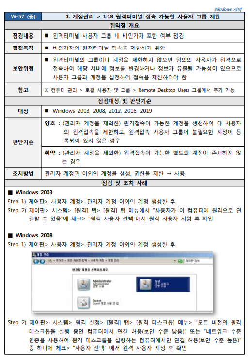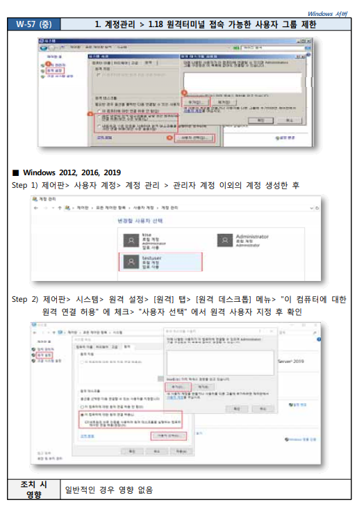 1.18 원격터미널 접속 가능한 사용자 그룹 제한