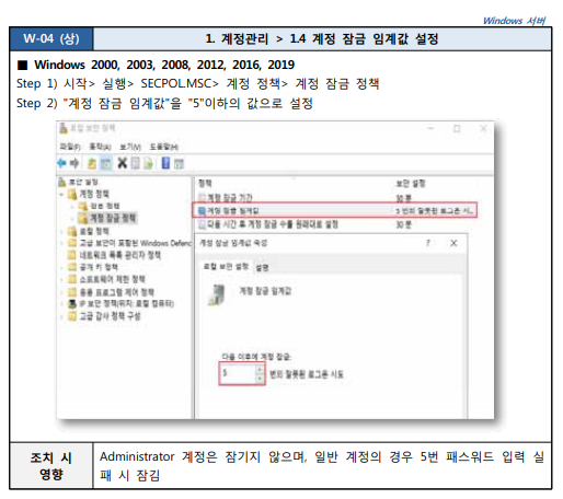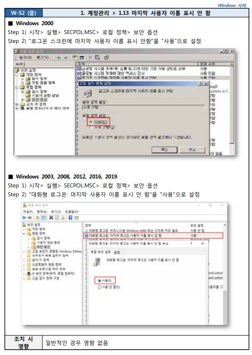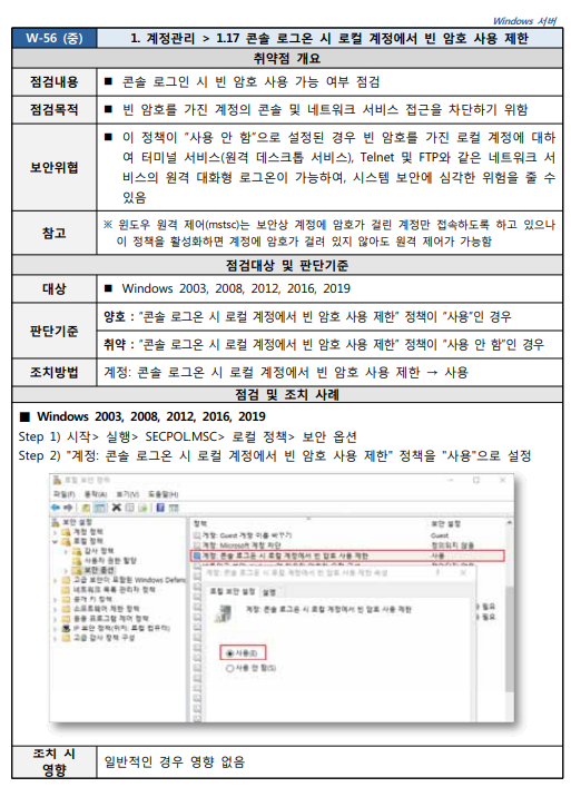 1.17 콘솔 로그온 시 로컬 계정에서 빈 암호 사용 제한