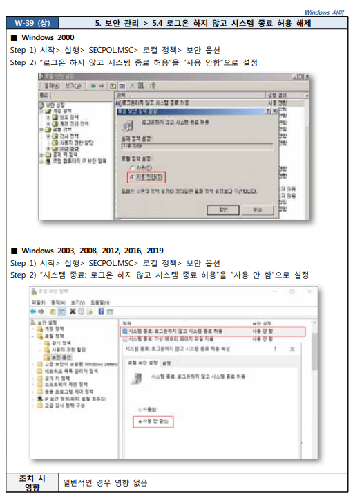 5.4 로그온 하지 않고 시스템 종료 허용 해제