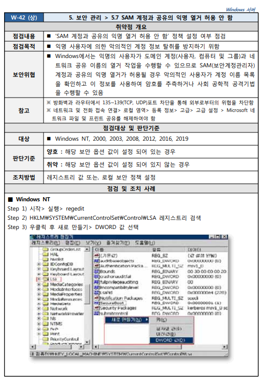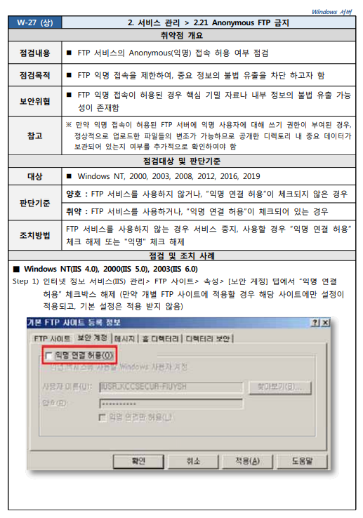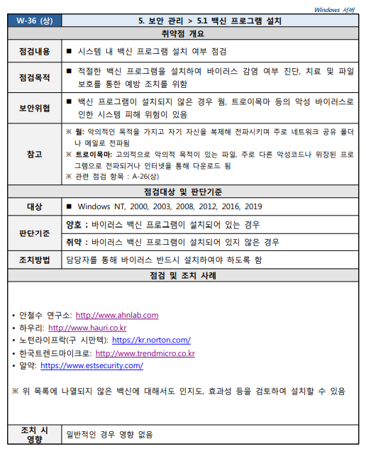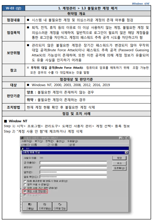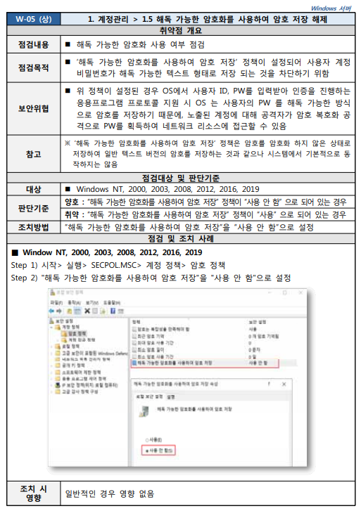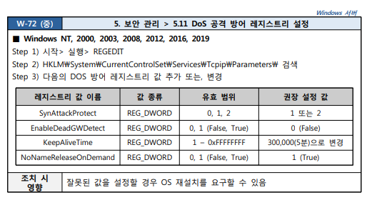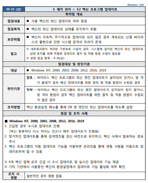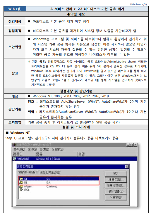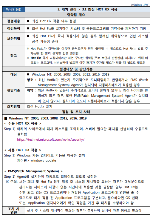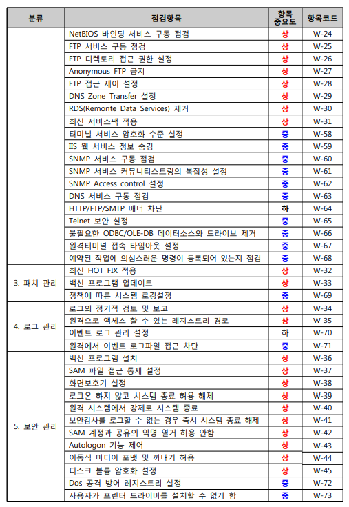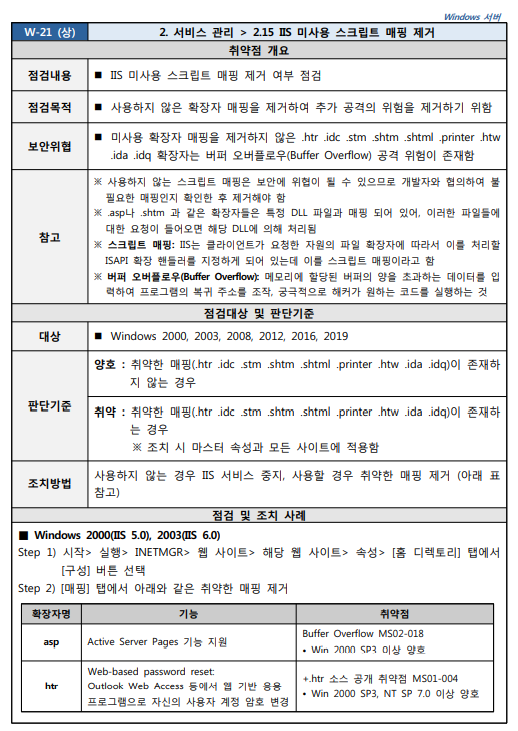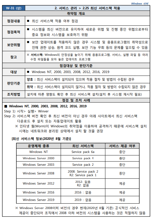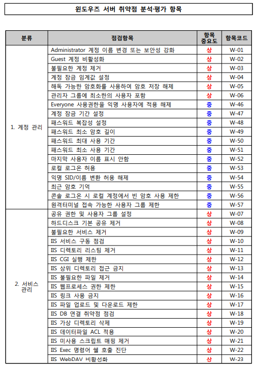 출처 : [2021.03] 과학기술정보통신부, 한국인터넷진흥원 발간 내용 "주요정보통신기반시설 기술적 취약점 분석ㆍ평가 방법 상세가이드"