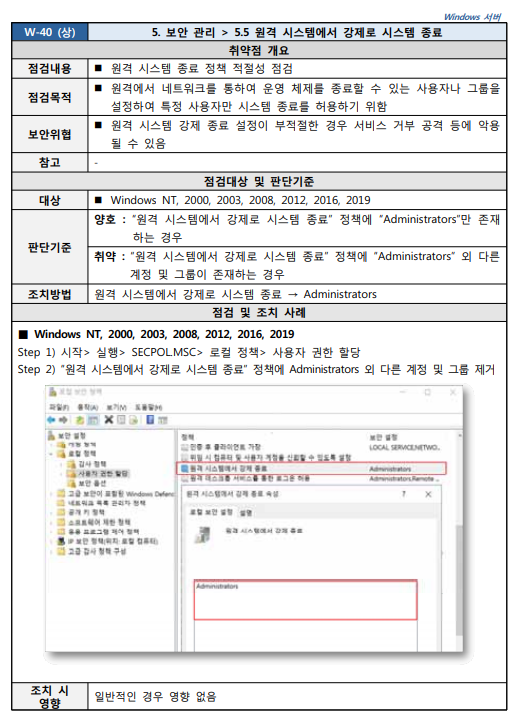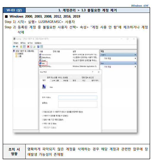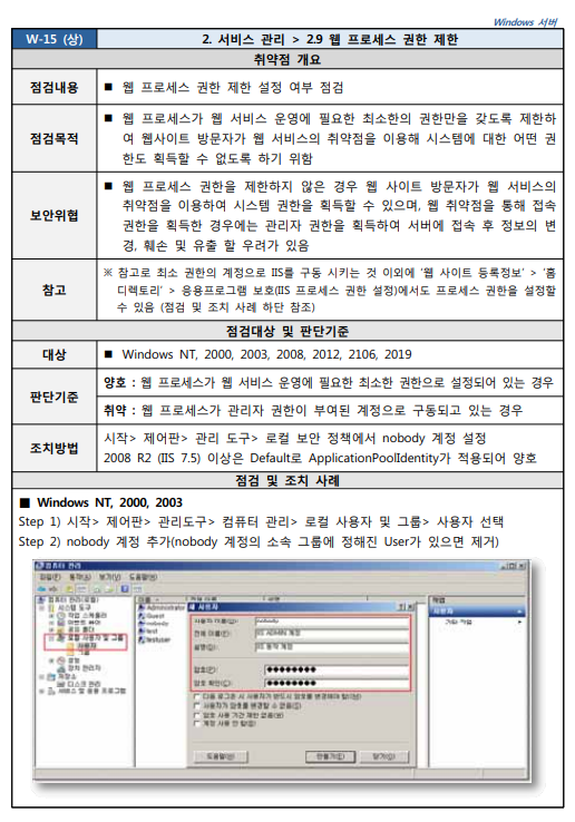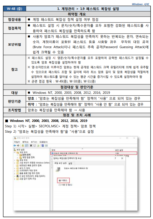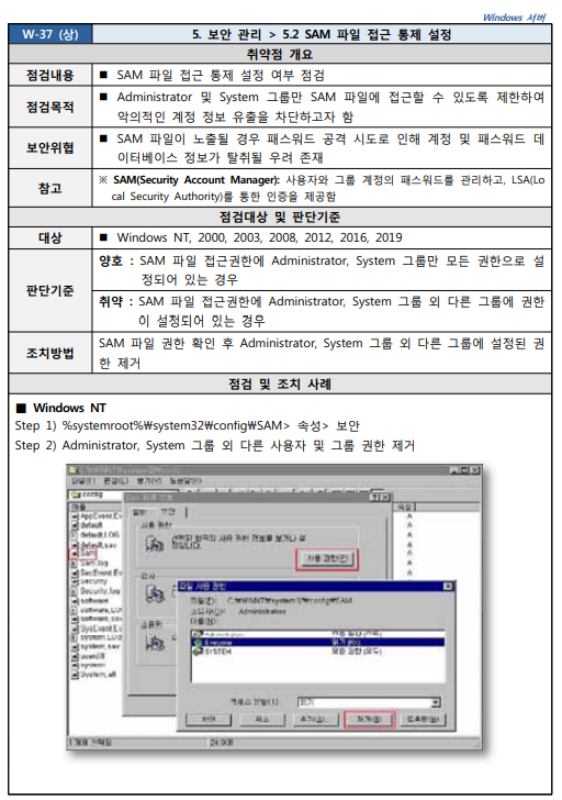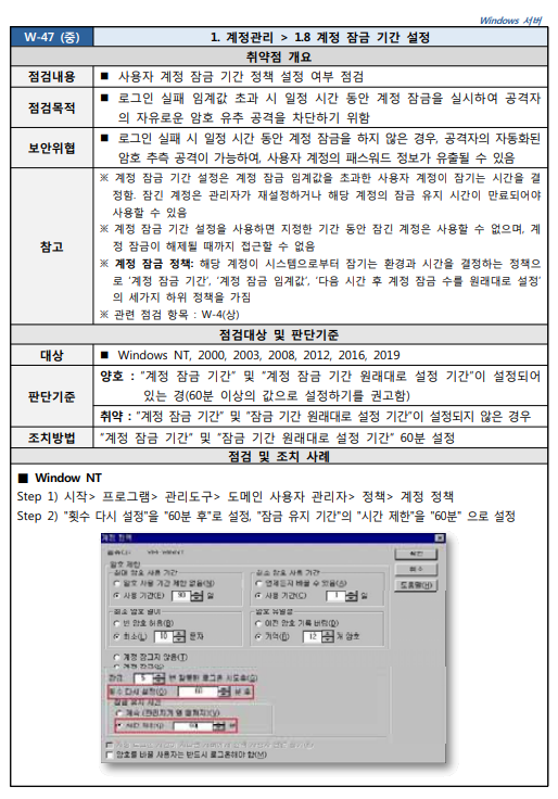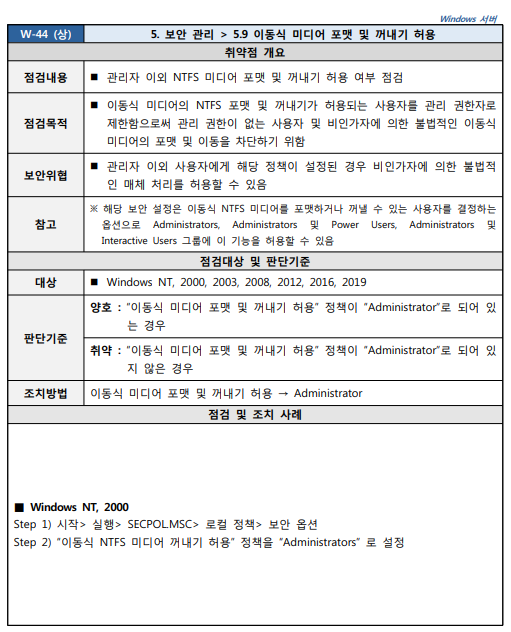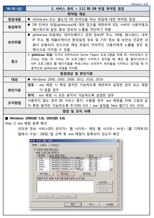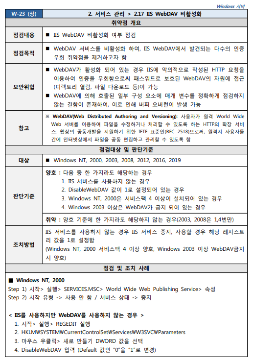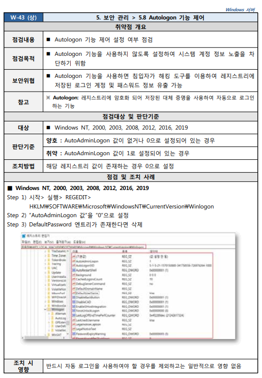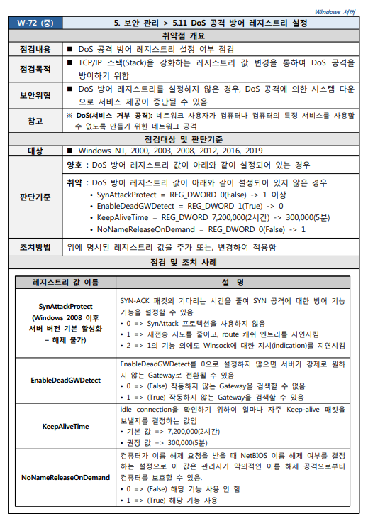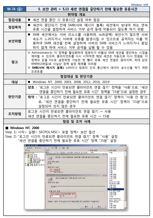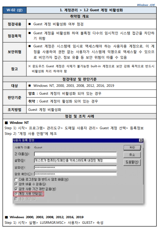 출처 : [2021.03] 과학기술정보통신부, 한국인터넷진흥원 발간 내용 "주요정보통신기반시설 기술적 취약점 분석ㆍ평가 방법 상세가이드"
