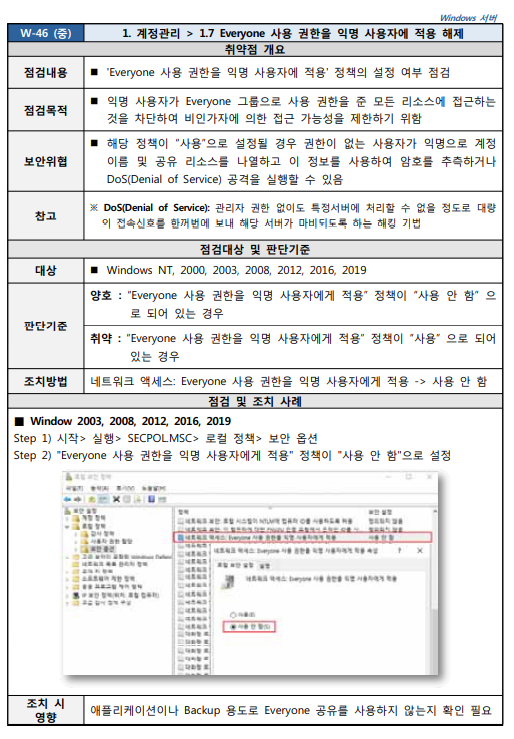 1.7 Everyone 사용 권한을 익명 사용자에게 적용 해제