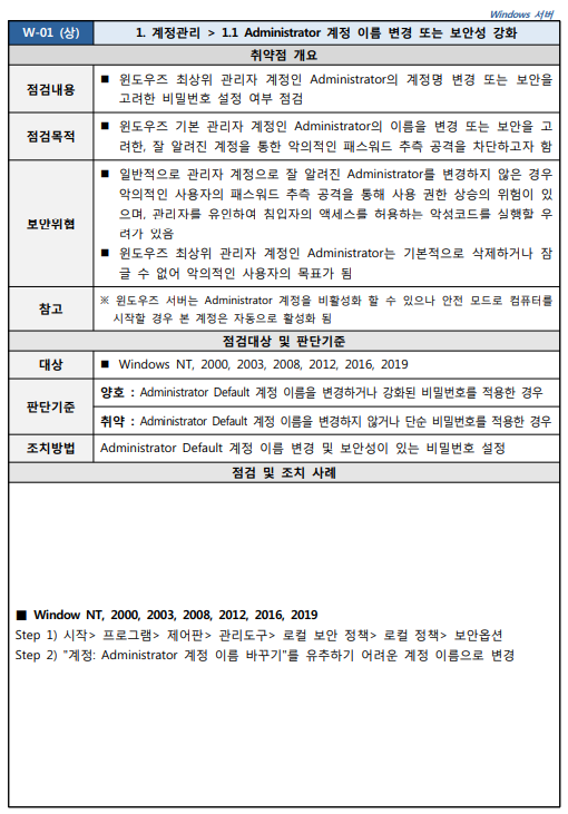 1.1 Administrator 계정 이름 변경 또는 보안성 강화