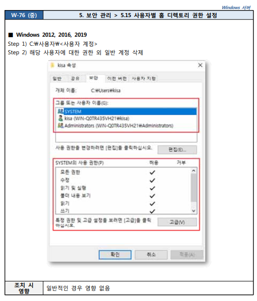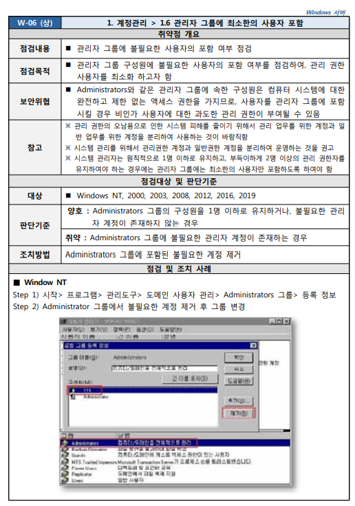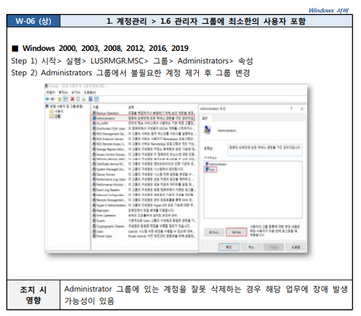 1.6 관리자 그룹에 최소한의 사용자 포함