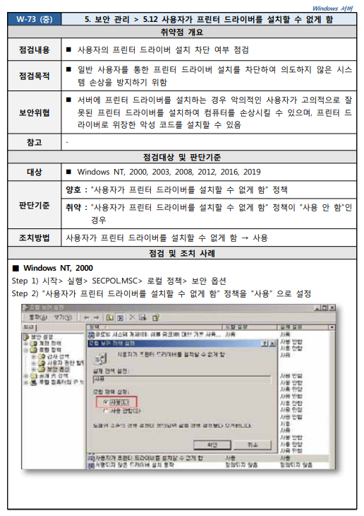 5.12 사용자가 프린터 드라이버를 설치할 수 없게 함