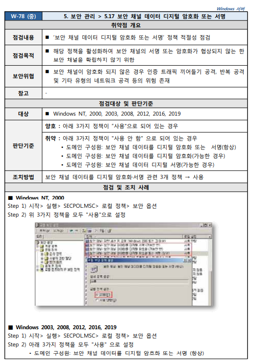 5.17 보안 채널 데이터 디지털 암호화 또는 설정