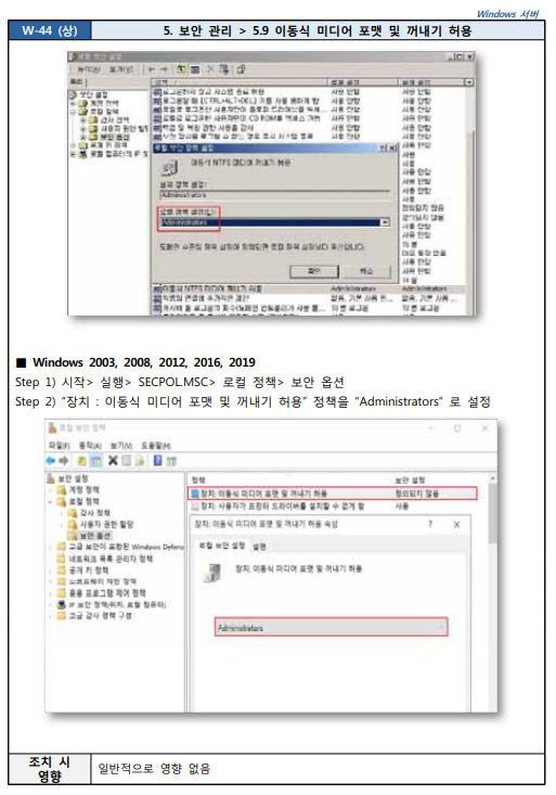 5.9 이동식 미디어 포맷 및 꺼내기 허용