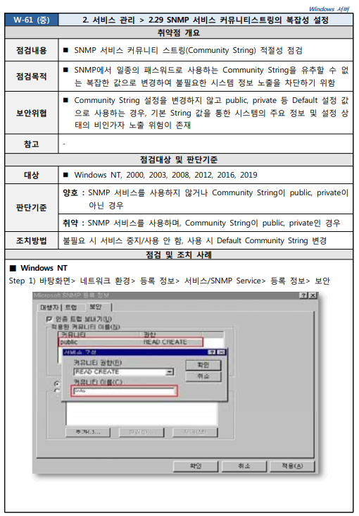 2.29 SNMP 서비스 커뮤니티스트링의 복잡성 설정
