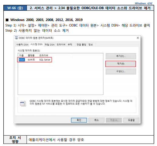 2.34 불필요한 ODBC/OLE-DB 데이터 소스와 드라이브 제거