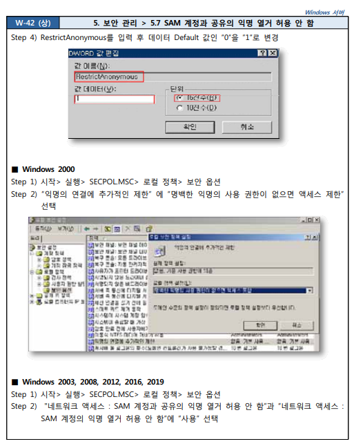 5.7 SAM 계정과 공유의 익명 열거 허용 안 함